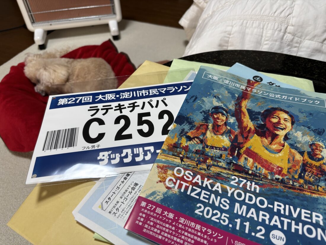 淀川市民マラソンまであと1週間となり、本日ゼッケンやパンフレットなどが届きました。