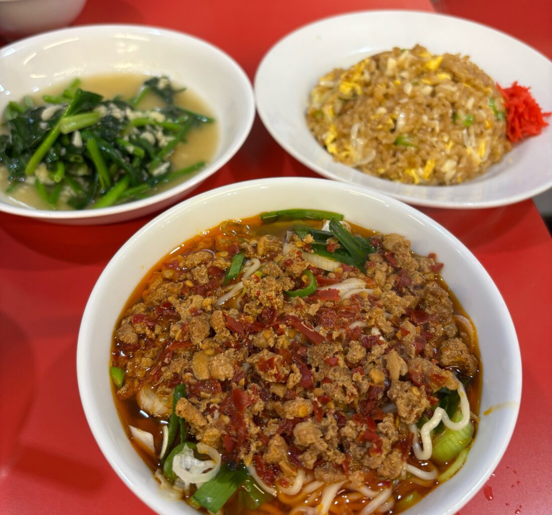 久しぶりに名古屋で味仙の台湾ラーメン、青菜炒め、にんにくチャーハンを食べています。